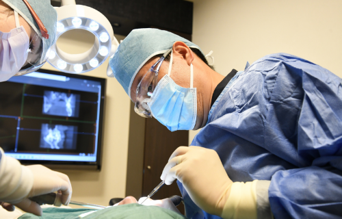 CTによる精密診断とガイデッドサージェリーを用いて、神経や血管の位置を確認しながら、安⼼・安全性を重視したオペを行います。