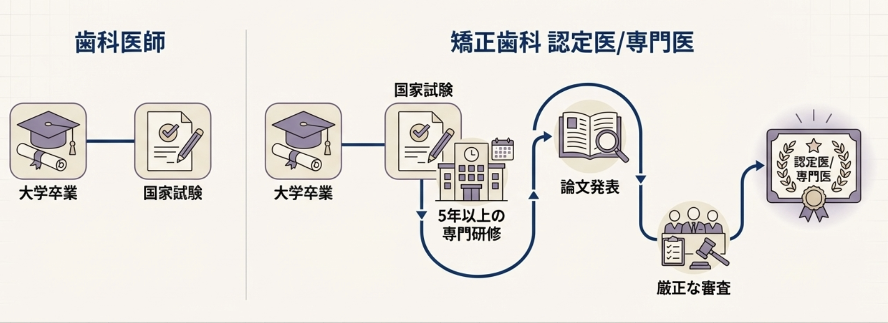 次に確認したいのが、日本矯正歯科学会の認定医や専門医が在籍しているかです。通常の歯科医師と比べて、専門性が高いのが特徴です。